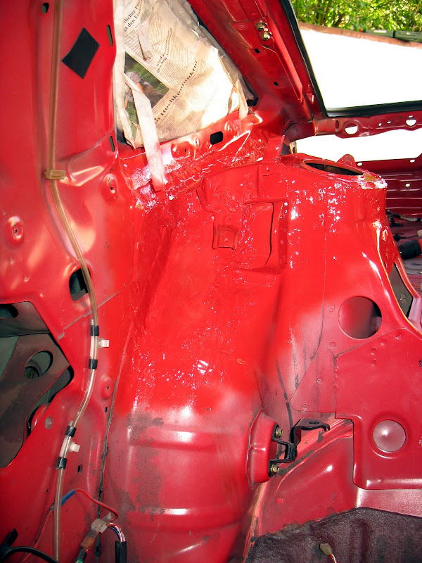 Bin leider immernoch nicht fertig. Zieht sie alles ewig. Aber zumindest karosseriemäßig ist fast alles fertig, fehlt noch die ein oder andere Leiste etc. Muß aber morgen erstmal die bestellten Clipse usw. holen. Der Innenraum ist fast komplett, den Rest lasse ich noch weg, bis ich sicher bin, daß alle Schweißpunkte halten.