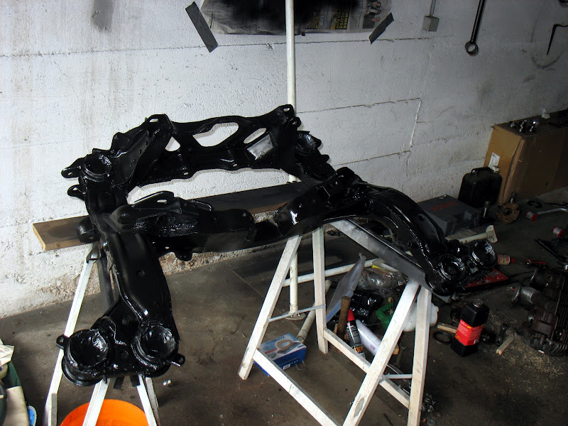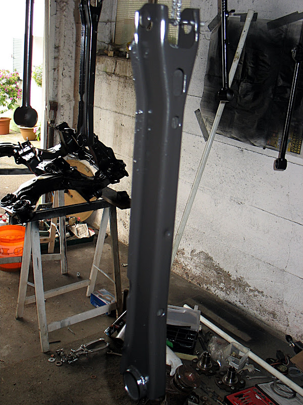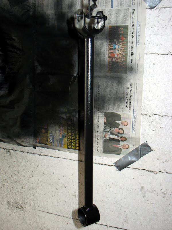 Aber wenigstens sind die Lager komplett verbaut und die Oberseite vom Rahmen hat die zweite Farbschicht bekommen. Noch einmal Unterseite, dann ist der fertig. Dann kann ich langsam an den Zusammenbau gehen. |