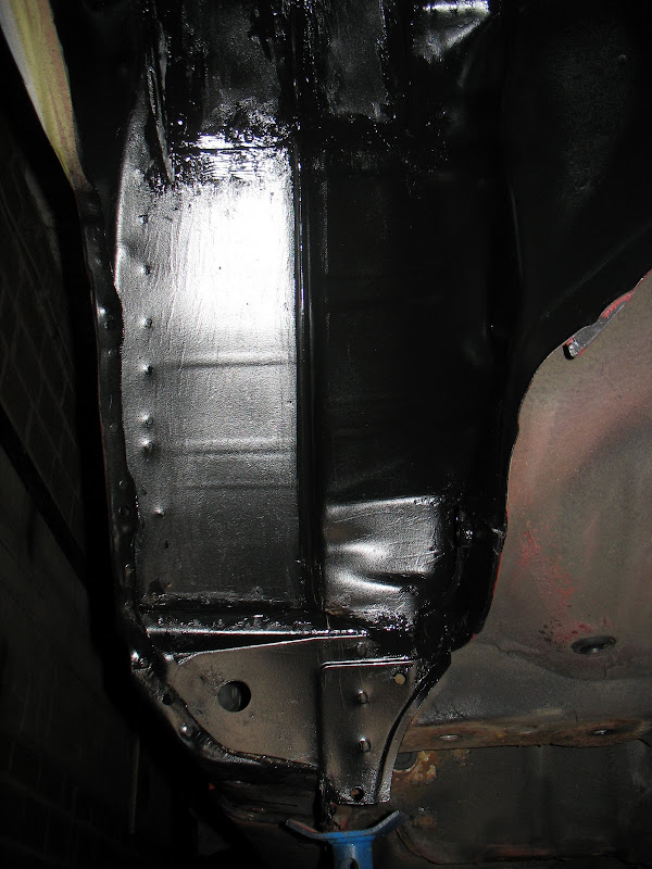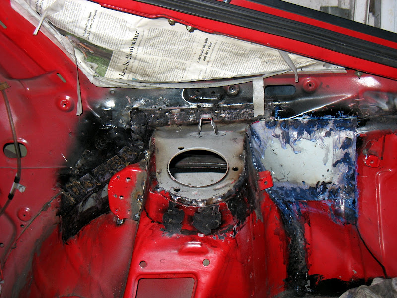 Das zweite Blech sitzt auch schon. Der Rostuwandler verrichtet gerade seine Arbeit. Morgen mach ich dann die Außenseite am Radlauf und das letzte Stück vom Radkasten. Dann ist die Seite komplett. Dann geht's auf der Beifahrerseite weiter.
